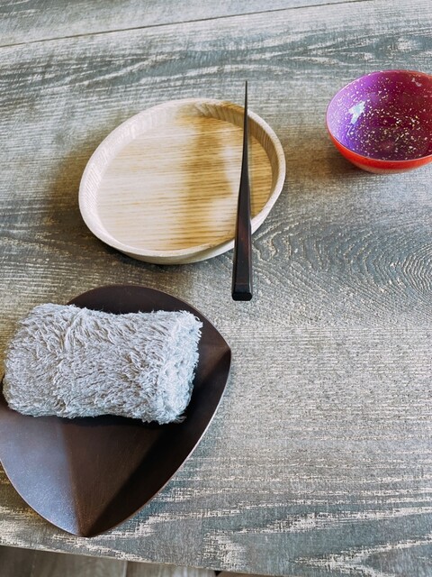 料理に添えてある細かい山菜や黒文字なども近くで