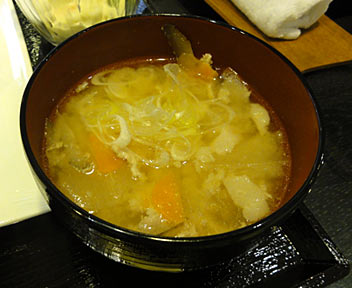 豚汁とポテトサラダ付きです。みそ汁ではなく豚汁というところに拘りを感じます。