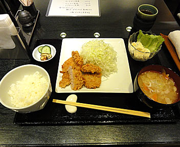白っぽい揚げたての衣はサクサクですごく軽い感じがします。見た目は少なく感じますが、かなり、満足出来ます。美味しいご飯もお変わり自由です。