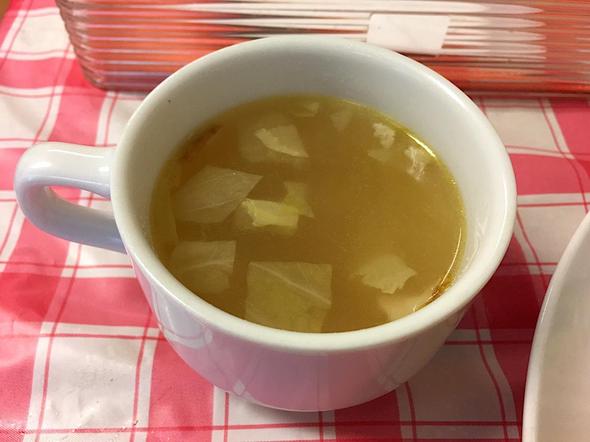 ニンジン、ベーコン、キャベツのスープ付きです。