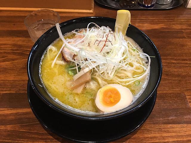 お店のイチオシと思われる濃厚鶏白湯ラーメンの塩味を注文しました。濃厚鶏白湯ラーメンは醤油、塩、味噌から味を選べます。