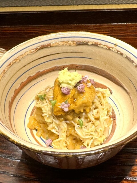 雲丹を混ぜ込んだウニシャリに蟹味噌で和えた毛蟹、アオリイカ、雲丹