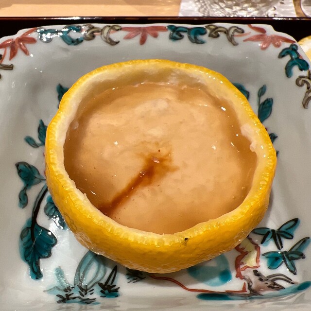 トラフグ焼き白子 蒸し寿司 ちり酢