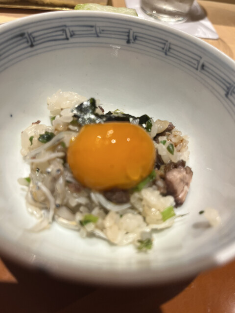 焼きスッポンとシラスの土鍋ご飯 卵黄の醤油漬け