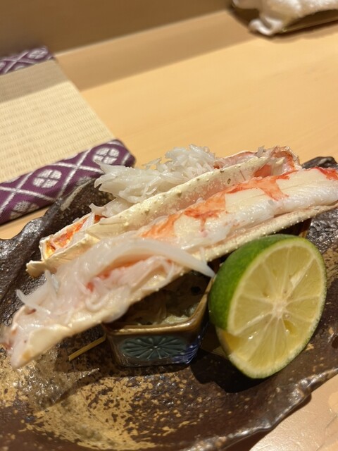大将以外に焼きを任されている田中さんの焼き蟹。