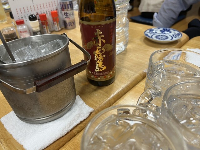瓶ビールを何本か空けて、赤霧島ボトルを空けて2次会へ。