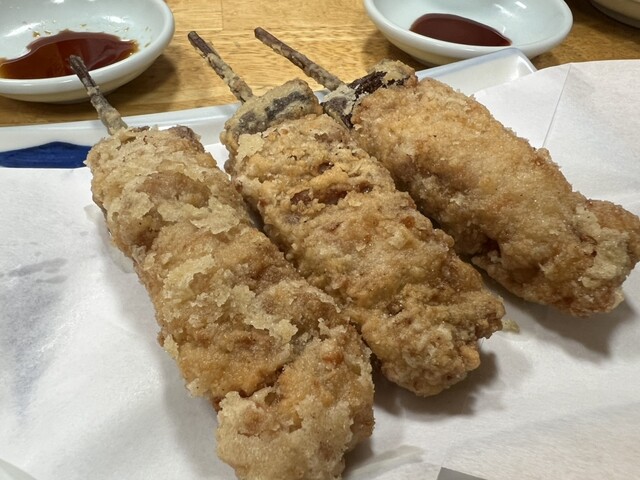 とり皮とつくねをタレで。普通に旨い。