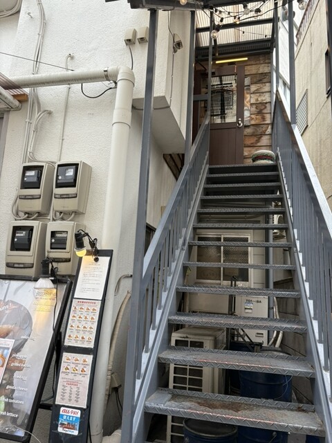 お店へは階段を昇って