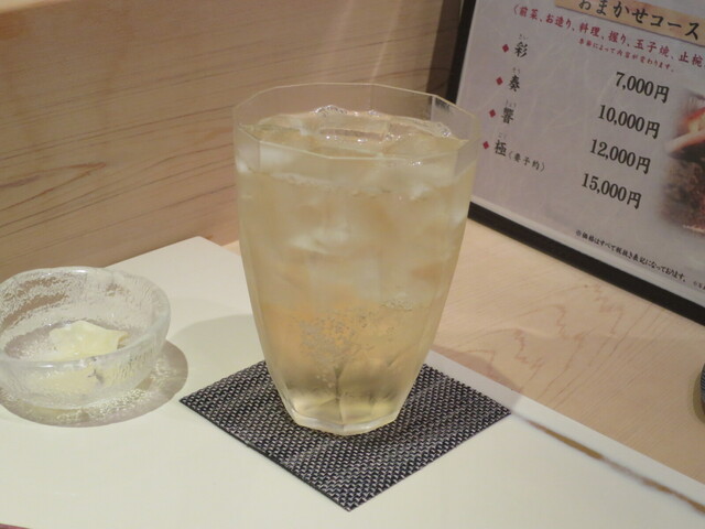 先ずは相方がいつもの様に白ワインを私はお茶でお願いします。