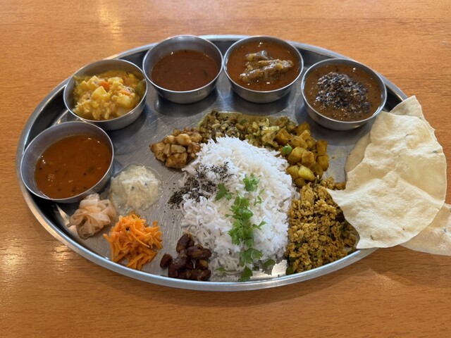 ・アチャールは個々には書きませんが、混ぜた時にアクセントとして効いてくるんですよね。わかり易いところだと、玉ねぎの酸味、キーマカリーの肉の旨味、金時豆の甘味、長ネギの風味、あと、チャトニによるココナッツの風味も混ざり、複雑で奥深く美味しいんです♪