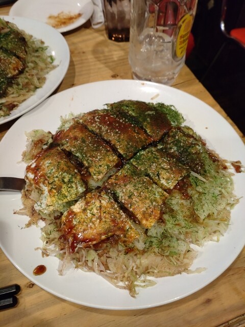 二人で広島焼、ねぎやき、チーズ焼き、玉子焼き。そしてこの日彼女は車で来ていたので、ソフトドリンクを二人で。前日日本酒を割とたくさん飲んでしまったので、ウコン茶はちょうどよかった。