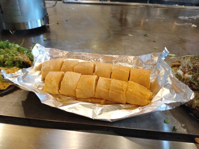 チーズ焼き、めっちゃ美味しい。彼女の希望でエビトッピング初でしたが、めっちゃ美味しかった。