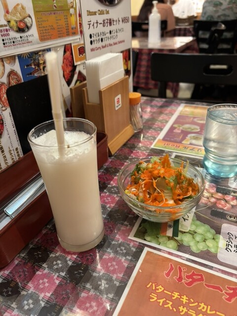 出張先や外出先で時々近くにインドパキスタンネパール料理の文字を見かけるのですが、リアルより美味しいお店に出逢ったことがないので、いつも選択肢から外れてしまう。先日も二つの出張でそれぞれホテルの近くにインド料理屋さんがあって行こうかどうしようか考えたけれどリアルより美味しくはないと判断。ということで、何だかインドカレーの口になっていたので夫とランチEセットを注文。