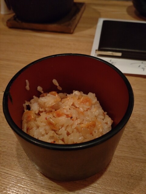 静岡の実家に帰省したばかりでしたが、今回桜えびを買ってこなかったので凄く嬉しい炊き込みご飯でした。記念日で、天然の鯛も入っていました。こういう気遣いが本当に堤さんらしい。