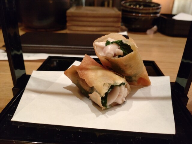 他には、うどが入った春巻きが季節を感じられて好みの一品でした。