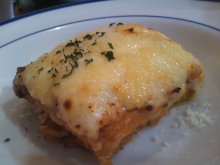 メインのラザニアはパスタ生地ではなくて、なんとピザ生地のラザニア