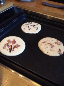 2枚のパンケーキの間にはスライスしたバナナが一緒に焼きこまれてて