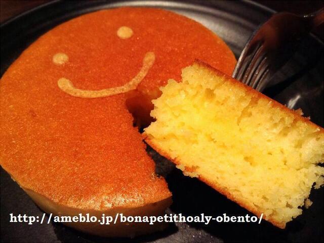 上の一枚をとると、下のパンケーキにはニコニコ顔!