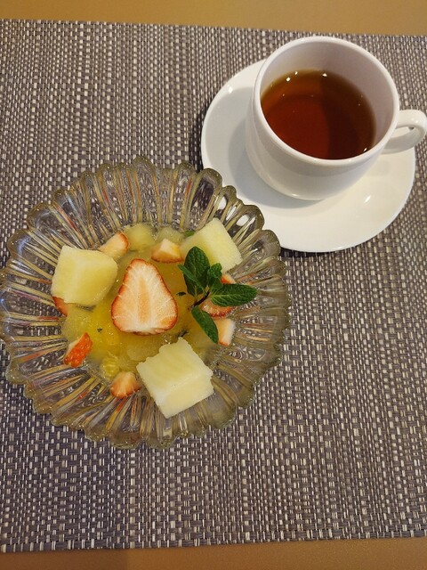 デザートは3種類から選べたので、かなりお腹いっぱいだったので、さっぱりとカラフルフルーツポンチりんごのグラニテにしました。
