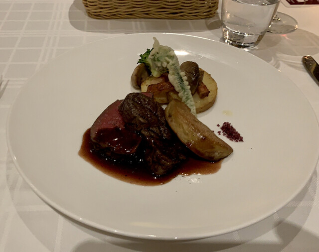 付け合せの野菜は同じでしたが、お肉はどちらも香ばしくカリッとグリルしてあり中心はロゼに仕上げていました(^^)塩加減も絶妙なバランスで絶品です!牛フィレ肉の味わいの違いも楽しめましたしワサビソースはそんなに鼻に抜けるってわけでもなく清涼感のあるクリームソースでケッパーの酸味もあり良かったです。フォアグラも最高でした(^^)モリーユ茸のソースは少し甘めで大変コクのあるソースで美味しかったです☆☆☆☆☆