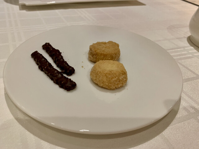デザートは温かいタタンにトンカ豆香るシブーストとブロンドチョコレートのグラスを添えて…昼間も食べましたがブロンドチョコレート「ドゥルセ 」のアイスクリームはとてもミルキーでコクが有りますがしつこさは全く無し☆☆☆温かいタルト・タタンの上にトンカ豆の冷たいシブーストが乗って温冷食感も色々楽しめて最後までバッチリのディナーを楽しめました(^.^)