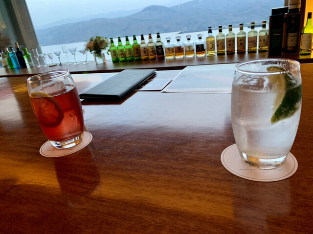 ついでにお隣のアクアバーで食前酒飲んだのもUPしております♪