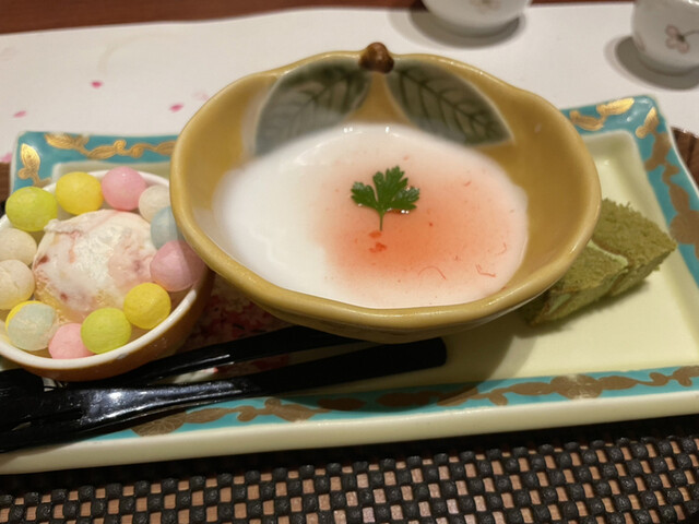 桜の抄は到着するとすぐに抹茶とお菓子で接待してくれます。