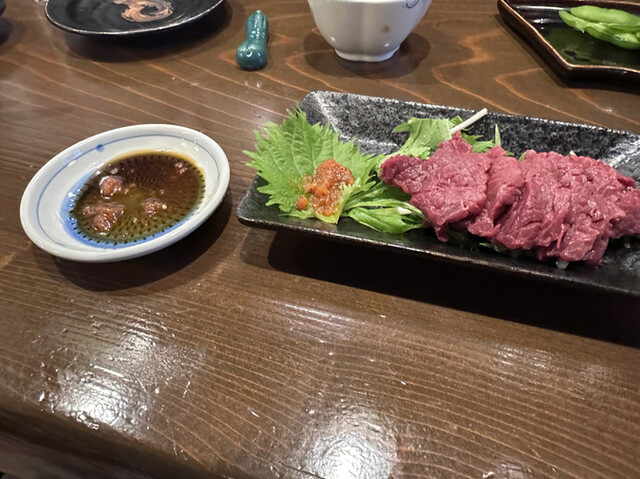 まずは、晩酌セットをおすすめされチョイスメニューになっており、その中に会津の馬刺し!があり初対面!