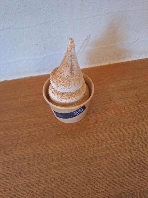 いよ翁の蕎麦茶ソフトクリーム、テイクアウトのみなので支払いを済ませてから受け取りました。甘さ控えめでミルクの濃厚さが全面に出てくる感じ。蕎麦茶の風味も味わい深い。相方も濃厚さをかなり喜んでいました。