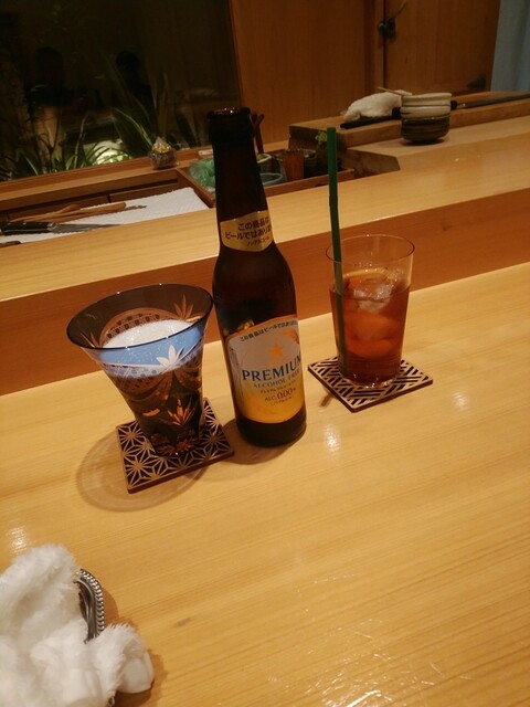 ノンアルコールビール一本目、相方の飲むウーロン茶一杯目