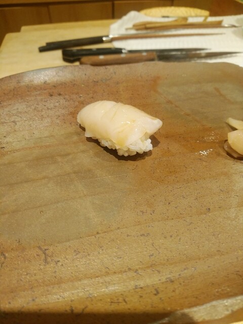 青森のホタテ貝、グニュッとクリーミーな甘さと酸味が口いっぱいに広がります。相方もクリーミーな旨さをかなり気に入ってました。