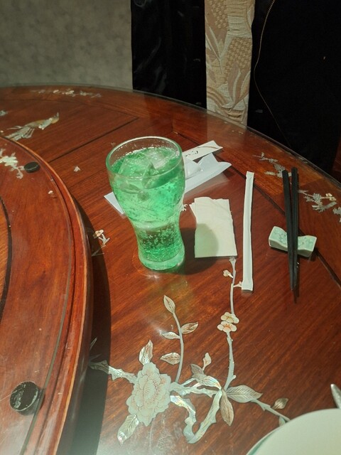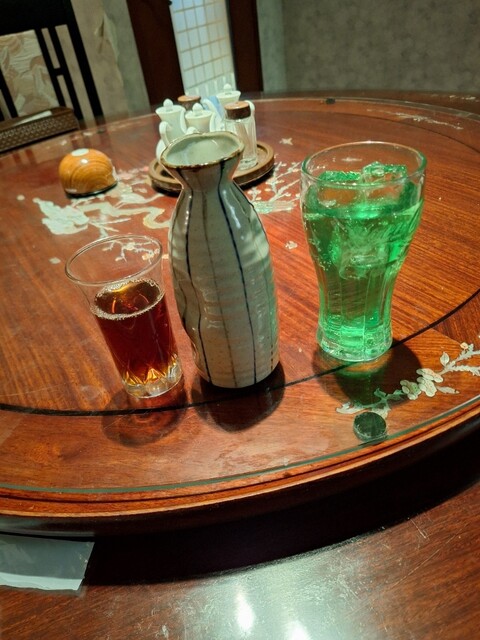 まずは私は紹興酒二合を注文。常温か熱燗か聞かれ常温でお願いしました。二杯目を焼酎【麦】白水ウーロン茶割りを飲みました。相方はメロンソーダを三杯飲みました。