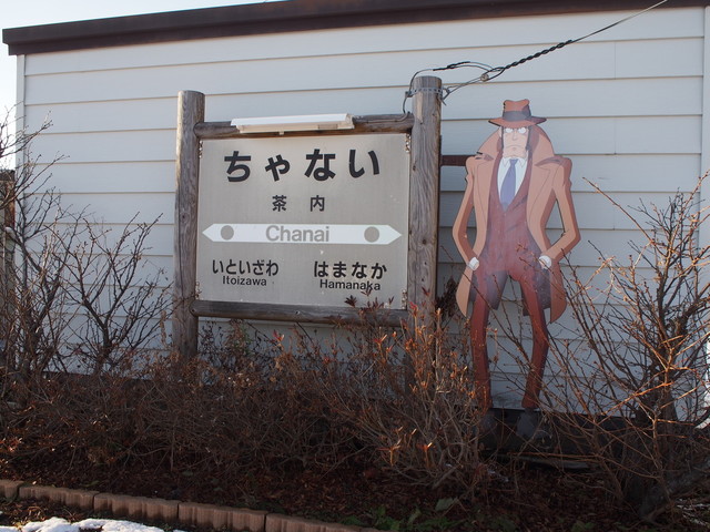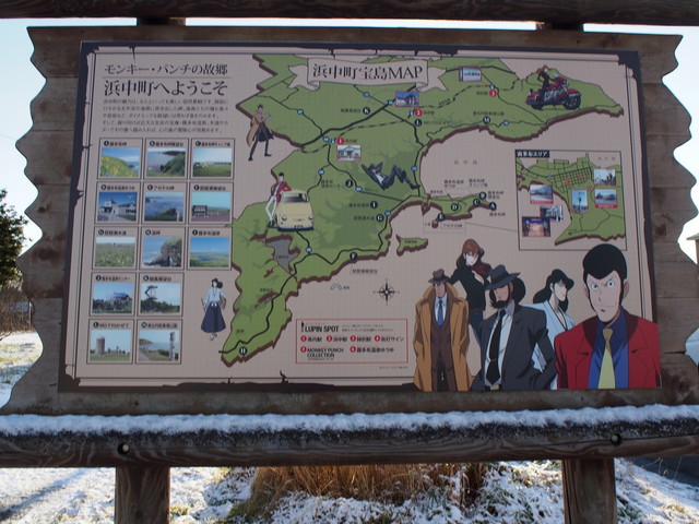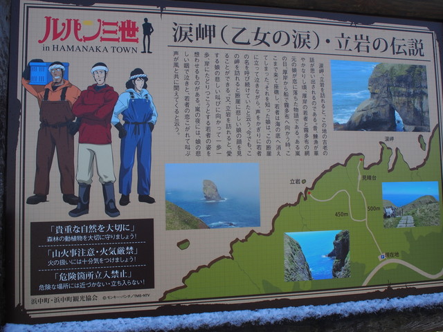 涙岬の観光ガイドの看板にはルパン三世の絵が
