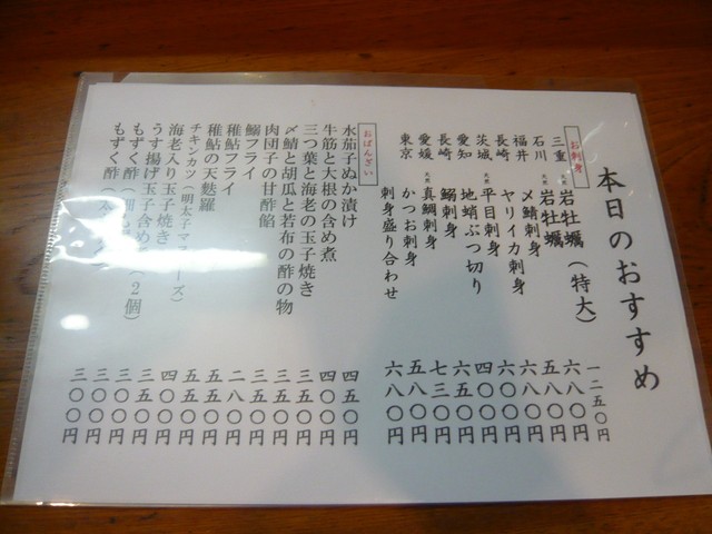 グランドメニューは無く、本日のオススメがメニューといった感じでした。