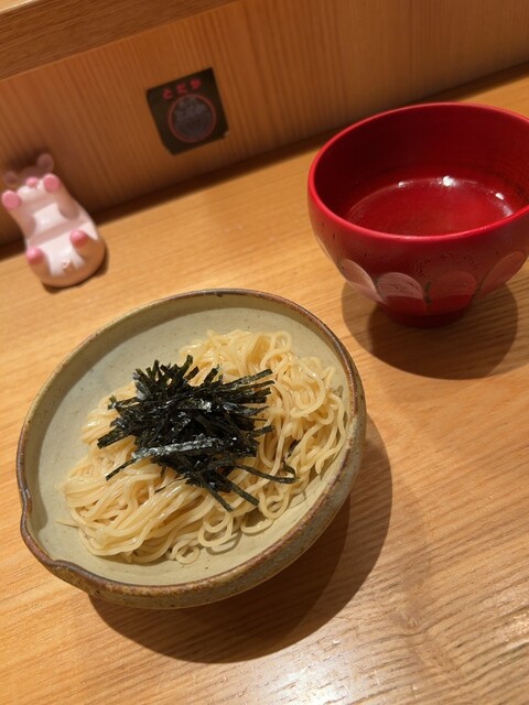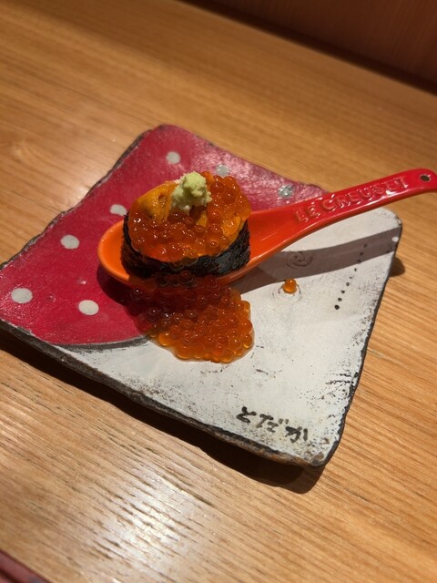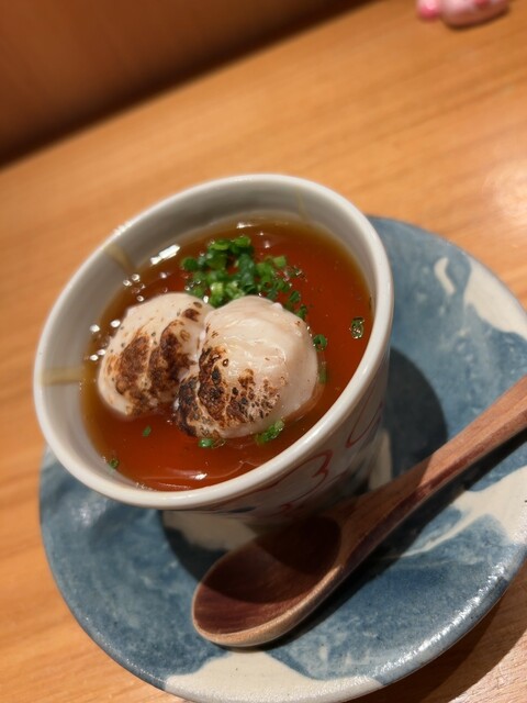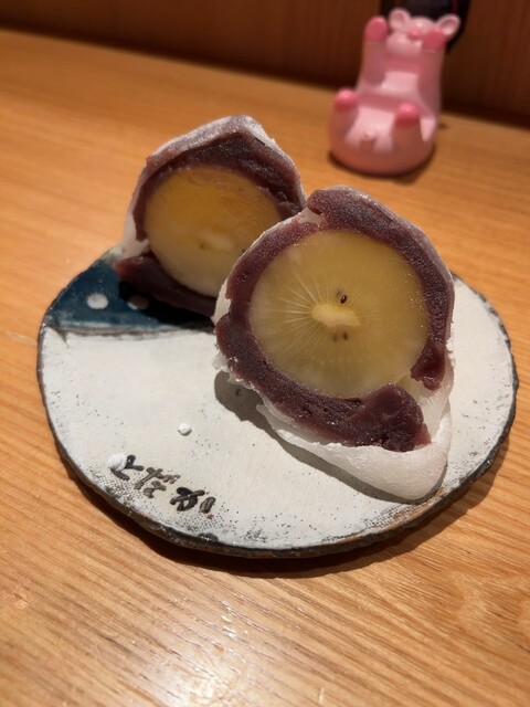 先付は看板メニューの雲丹オンザ煮卵で、改めて写真映えと味が両立した良い品だと思います。次の海老芋の唐揚げにしっかり下味がついていて、正統派日本料理っぽいなと思っていたら、次の椀の吸地がすごくて。酸味を感じるくらいしっかりした日本料理の出汁を使っています。居酒屋系アイデア料理を延長したお店だと思っていたので、正統派日本料理のテクニックを使っていることに驚いたし、これは人気が出るのも当然だと納得しました。出汁がしっかりしているので、その後の素麺も煮物も、もちろん美味しくて。フグの唐揚げを出す懐の広さもすごいと思うし、茶碗蒸しのポン酢あんの酸味がコースの中の良いアクセントになっていて、コース構成も素晴らしいと思います。締めの炭水化物は4種類あって、選択制ではなくて全部食べれます笑。シャリオデセールのようにデザートの全部乗せは聞いたことありますが、炭水化物でをそれをやるというのはオンリーワンの斬新さがあると思います。もちろんそれなりのボリュームなのでテイクアウトできる品もあるのですが、できたてが一番美味しいのでその場で食べきっていきたいところです。4品どれも美味しかったです。それにしても使っている牛肉の質がすごくて、この点も驚きました。最後の甘味はその場で包んだいちご大福。最後まで美味しかったです。