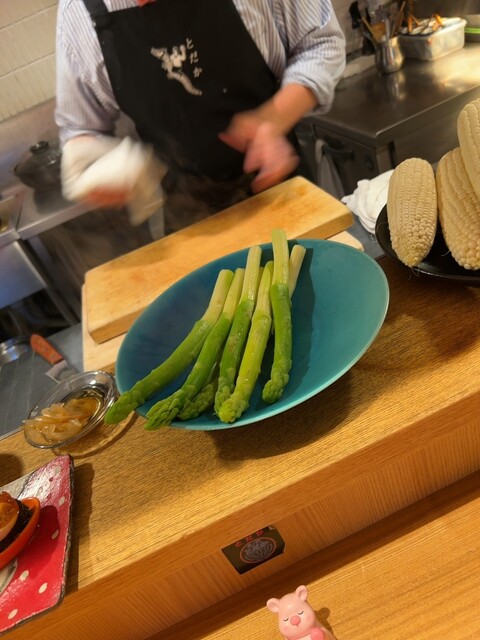 ドラマにお店が出てから勢いに乗っているお店の、系列のお店です。個人的には流行りに乗り遅れたので今更感が悩ましかったのですが、系列店に行ってみて興味を持ち、少し頑張って予約してみることにしました。幸い予約はネット予約を積極的に利用しているお店なので、ネット予約をマメにチェックして、虎ノ門とだかの空席を見つけることができました。場所は虎ノ門ヒルズにある虎ノ門横丁の一角。虎ノ門横丁はたくさんのお店が軒を連ねていて、フードコートっぽい感じです。ただ、それぞれの店舗は独立していて、基本的に一店舗で完結できる感じです。こちらのお店、開始時間は全員一律同じ時間です。スタッフも出てくる品数も多いので、提供タイミングを揃えるためという意味なのかなと思います。
