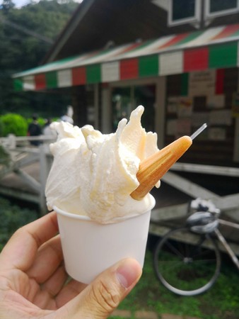 今回はダブル。ミルクとバナナミルクを選んで。暑いのでよろしい一層美味しい。やっぱりこの情報か人が多い。