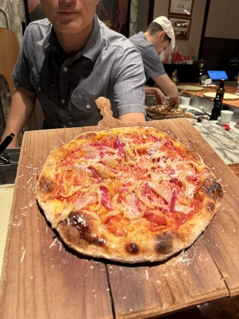 「ザ ピッツァバー ON 38TH」で2万円のコース料理を堪能しました。8席のみの特別な空間で、8種類のピザを8人でシェアするスタイル。ピザをこんなに楽しく、そして美味しく食べられるとは衝撃でした。一つひとつが丁寧に作られており、どのピザも個性が光る絶品。生地の香ばしさ、具材のバランス、焼き加減すべてが完璧で、ピザの奥深さを改めて実感しました。唯一無二の体験ができる、また訪れたい名店です。