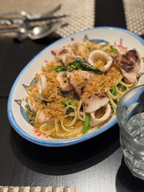 ヤリイカと菜の花のペペロンチーノ