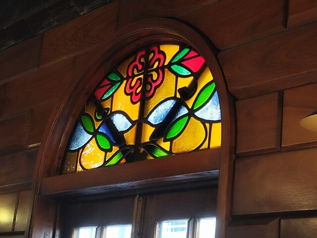 ステンドグラスを使った窓、シャンデリア、キッチンのモザイク…レトロな空間も味わえるお店は他にないと思います。
