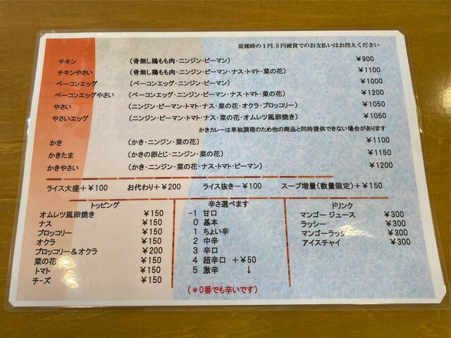 れほど変わらない「ベーコンエッグ」を3辛口で、そしてライスは小盛りで注文して出待