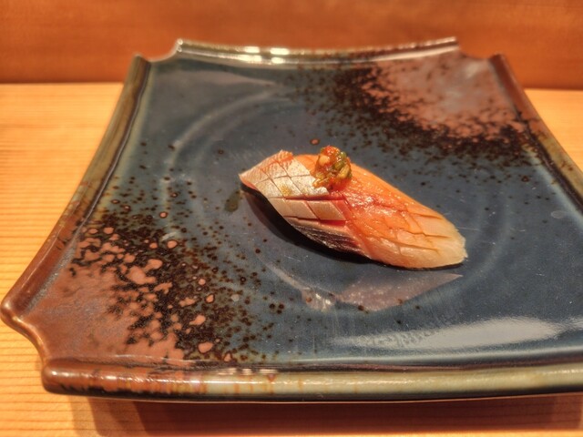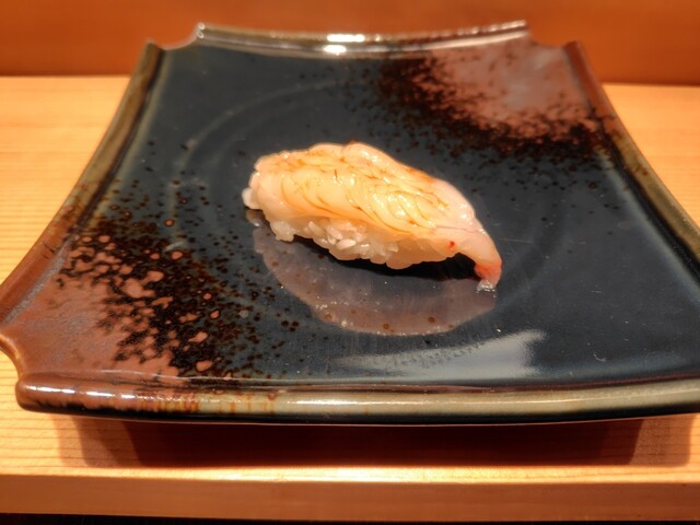 コースの後半に入った頃に、一人の女性(おばさん)が隣の席に座った。東京からの常連さんらしいが、よくしゃべる。口から生まれたとはこの人のことかと思うほどにずっとしゃべっている。大将は自分のことを気にされて、時々、自分に話を向けてくれるが、そんなことはおかまいなしにしゃべる、しゃべる。マシンガントークが続く。