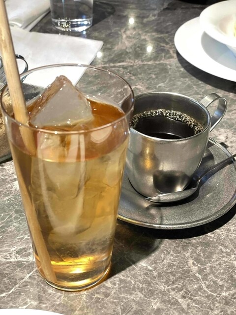 1階の「MORETHANTAPASLOUNGE」だと、様々なフレーバーティが楽しめたので、今回も温かい紅茶にしようかなと思いましたが、暑かったのでアイスティーに。連れはホットコーヒー。