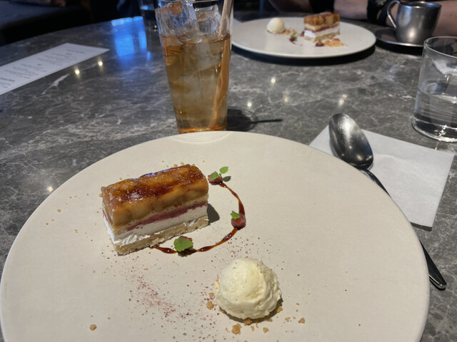 ドルチェはコーヒーか紅茶か選べて、私はアイスティーにして「リンゴのタルトタタン」。こちらもキャラメリゼされたりんごが、パリパリしていて美味しかったです。