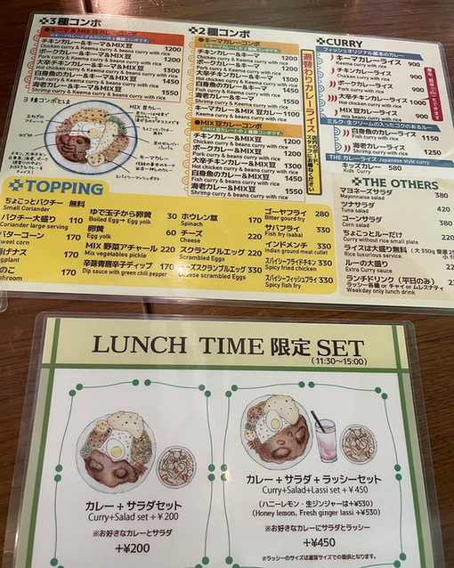 単品のカレーと2種類のカレーが楽しめるコンビネーションから選択メニューにずずずっと寄ってみると、こんな感じ。