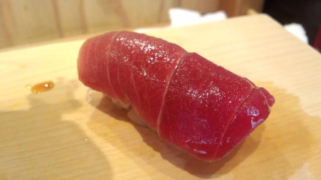 本鮪赤身○ 近海で取れた200kg級。このぐらいのサイズが味の具合が丁度いい、らしい。