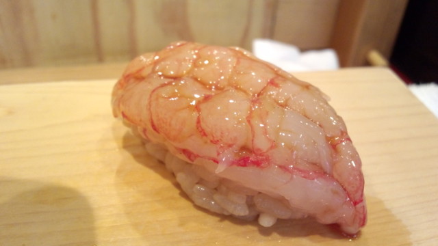 笛吹鯛○ 皮が軽く炙ってあって、ほんのり香ばしい。真鯛のプリッとした身と違い、むっちりした食感。