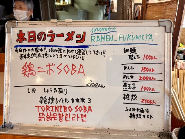Instagramのtakuchannel.fukumiyaのストーリーズで当日のラーメン情報が流れて来ますが、忙しくてアップ出来ない時もあるようです。