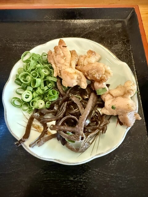 地鶏、ネギ、キクラゲ。