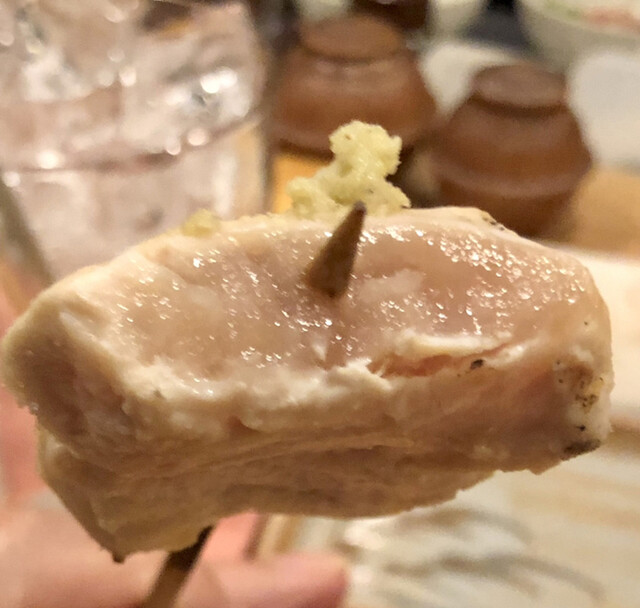 「あの頃から変わったことが2つあります。鶏は大山鶏から薩摩赤鶏に変えました。贔屓にしてくれていた千代の富士親方に食べ比べして貰って、これが一番美味しいと言ってくれたから敬意を表しての事だそうです。もう一つはさび焼きとちぎもの火入れ、規制に従ってしっかりと中心まで火を通すようにしたので以前からのお客様には不満かも知れないです。」と平謝りでしたが、これは仕方ない事です。